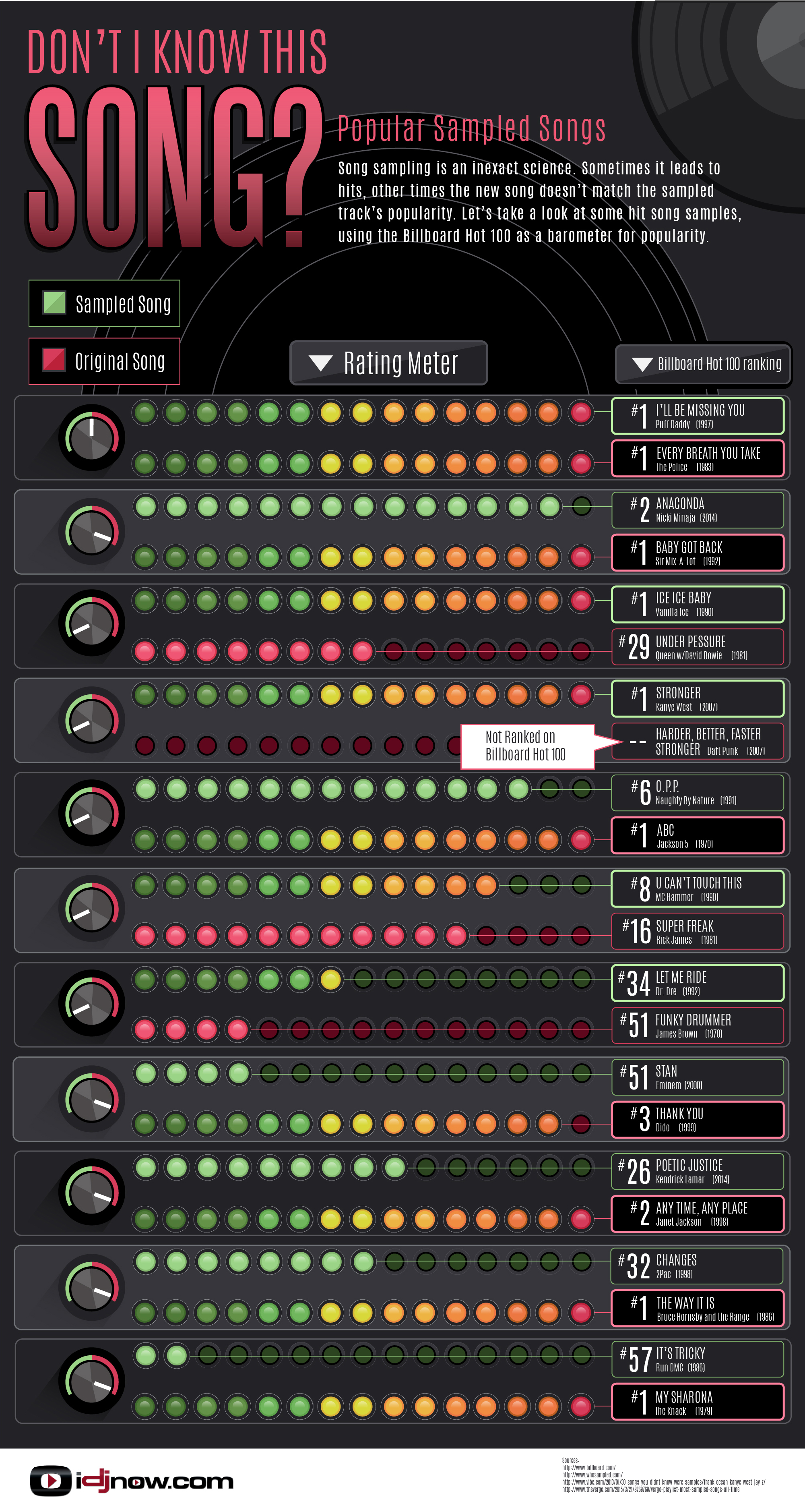 “Haven’t I heard this somewhere?” How often do you hear that when jamming out to your favorite new tracks. There’s no doubt that a lot of songs are used to create newer songs that sound quite similar. The below infographic details out some great examples of two songs that sound quite similar as one version heavily used samples from the other: