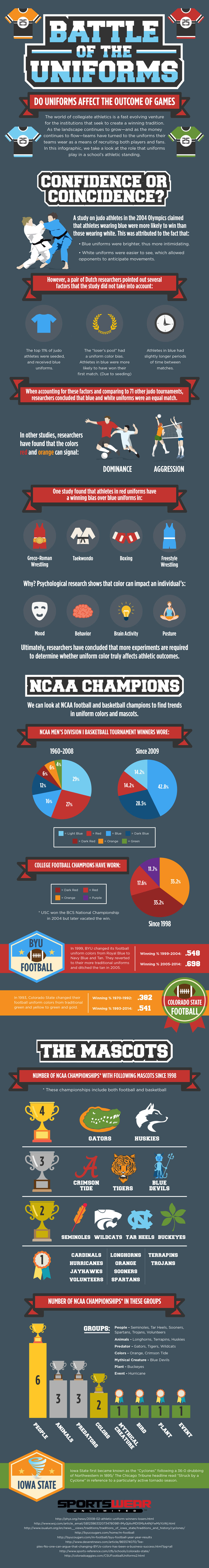 Does the type of uniform you wear during competitive sports have an affect on your performance? The below infographic dives into some studies that show what colors have proven to give athletes just the slightest of edges in sports.