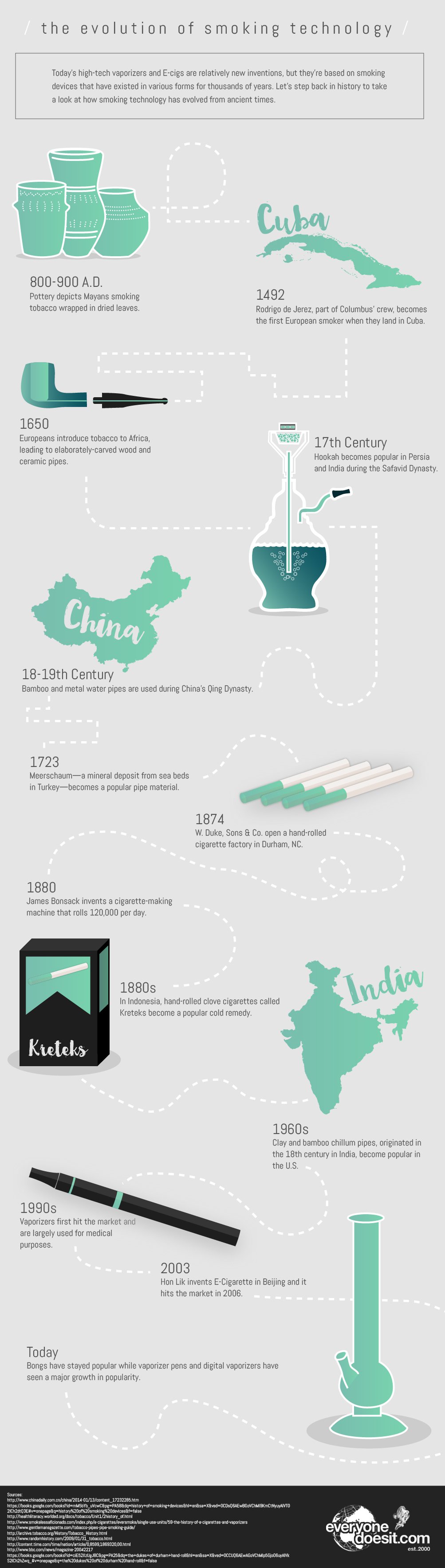 With all the new inventions in smoking devices, the below infographic takes a step back and reveals a bit of the history behind smoking and all the devices used through this time. Take a look below!