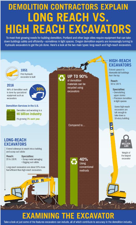 Nothing more interesting than big construction explanations. We often wonder what all those big machines are for every time we drive by construction sites, so the below infographic was a real treat. Check out contractors explain the difference between long reach versus high reach excavators.