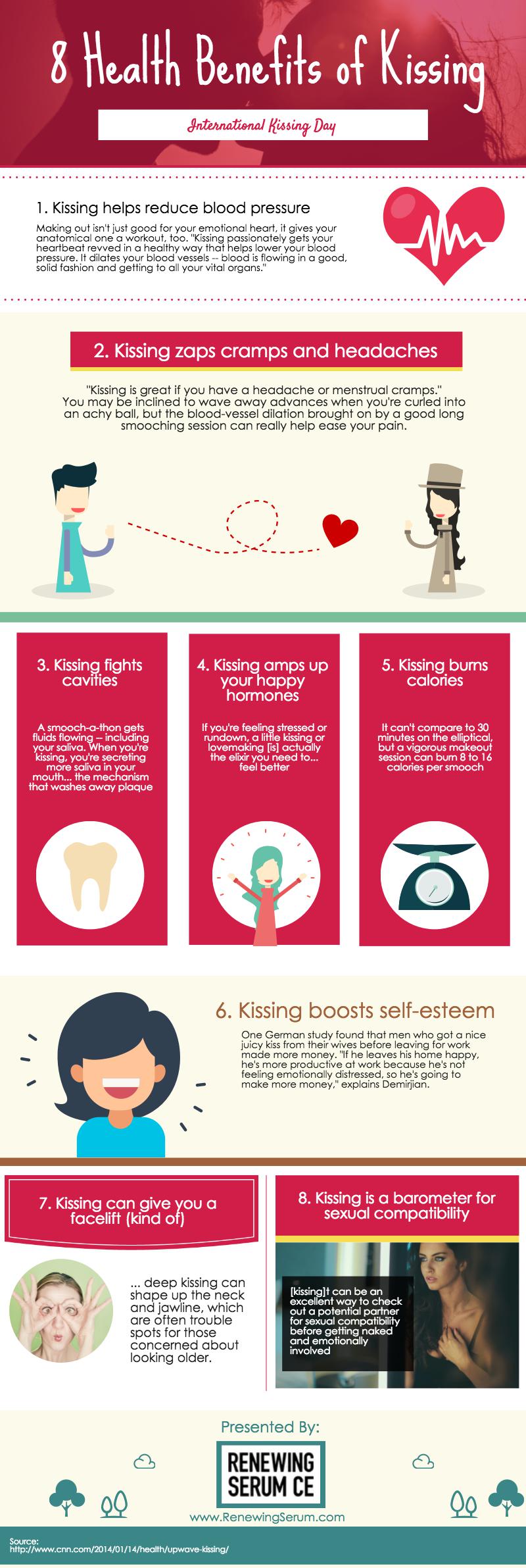 A little smooch can actually go a long way in making you healthier. For example, did you know that kissing can help alleviate headaches? There are seven other benefits to kissing, all listed below, check it out: