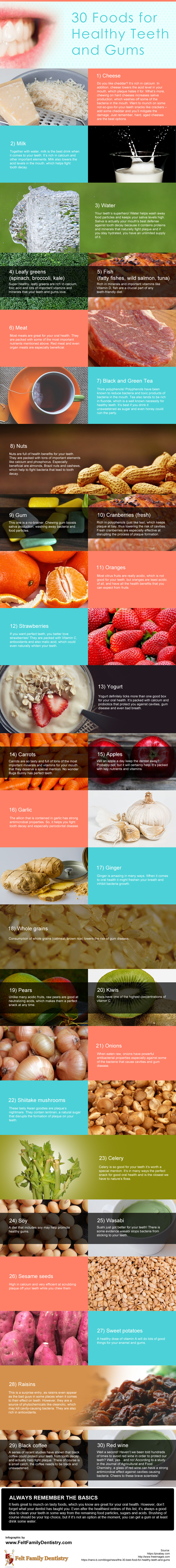 More than just brushing and flossing, what you eat can greatly affect your oral health. The below infographic details out a lot of important information around foods that are good for healthy teeth and gums.
