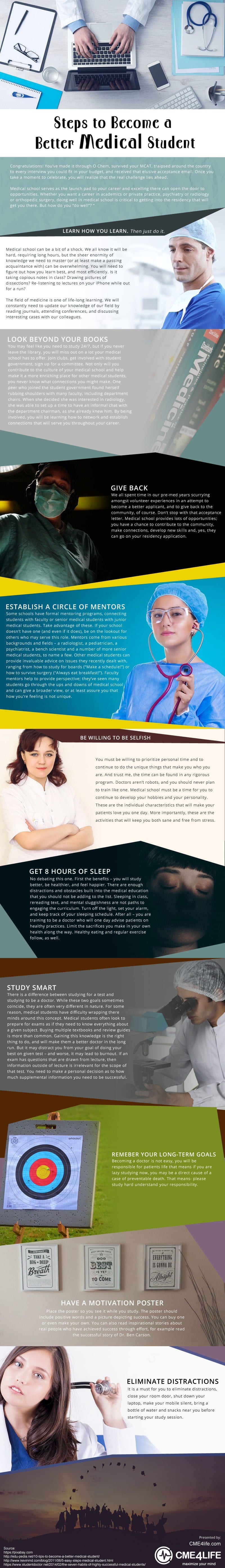 Medical school is hard, very hard. But there are several tips and tricks that can help make you a better medical student. The below infographic details out some good ideas for making sure you’re set up for success!