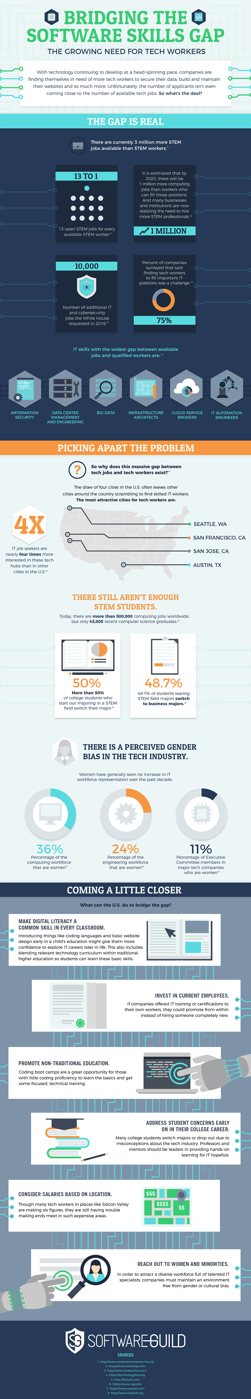 There’s no hotter talent in the world than knowing how to code these days. But there is a big shortage of people capable of filling these tech roles. The below infographic details out how there is a need to bridge the software skills gap.