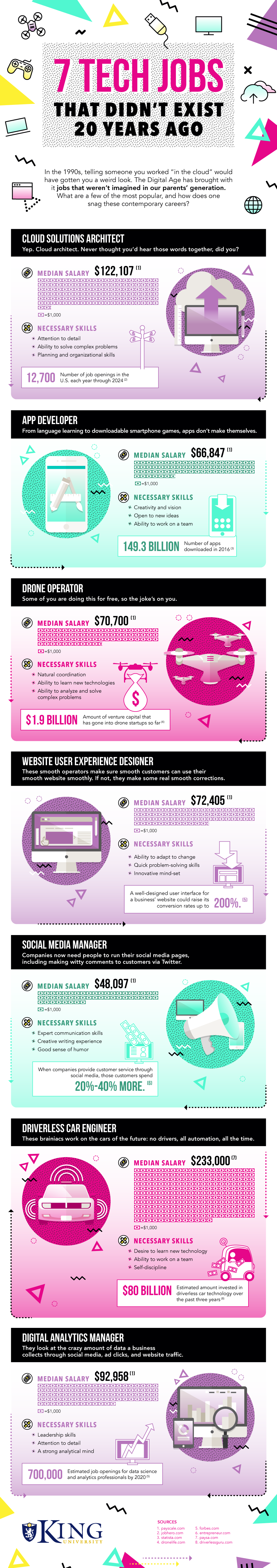 The world of technology is moving faster than ever. The below infographic details out seven jobs in tech that didn’t even exist 20 years ago. It’s fun to think about what new jobs might pop up in the next 20 years as well, isn’t it?