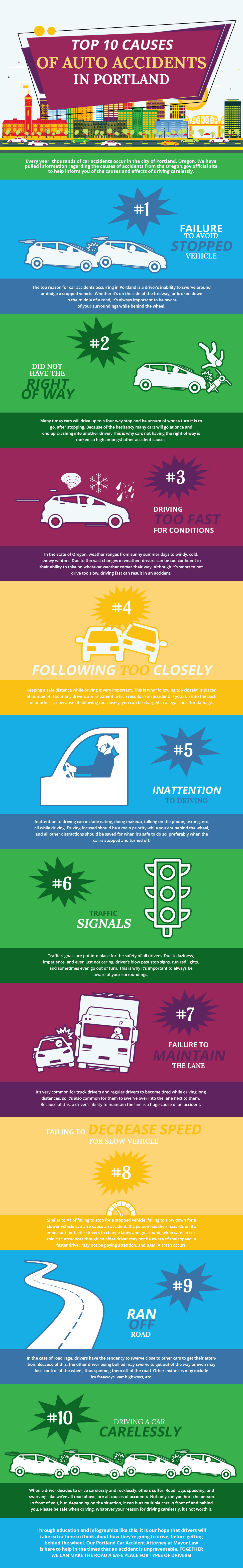 If you’re looking for data about what the main causes are for car accidents in Portland, the below infographic offers plenty of great details. Breaking out tons of interesting facts, you’ll gain a lot of valuable information when it comes to thinking about how to avoid accidents while driving in the city.